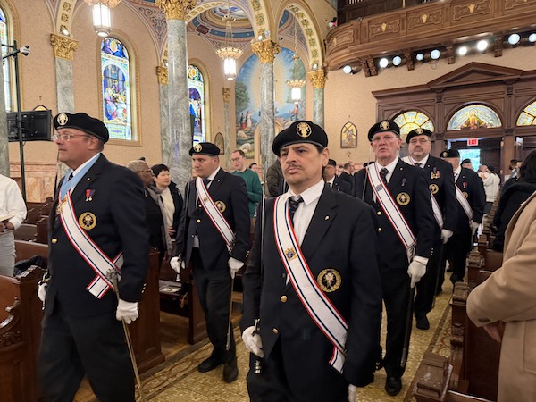 La Guardia de Honor de los Caballeros de Colón encabeza la procesión de entrada en la Concatedral de St. Joseph. Los Caballeros trabajan para promover una cultura de la vida en Estados Unidos brindando asistencia a madres embarazadas y clínicas de salud, según afirmaron sus líderes. (Foto: Paula Katinas)