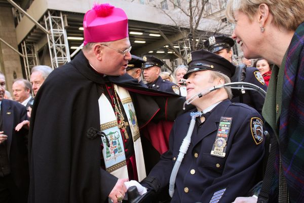 El cardenal Dolan, que celebró la misa funeral de Steven McDonald, elogió a Tisch el 4 de marzo, después de juramentar y recibir su “placa” para ese nuevo cargo.